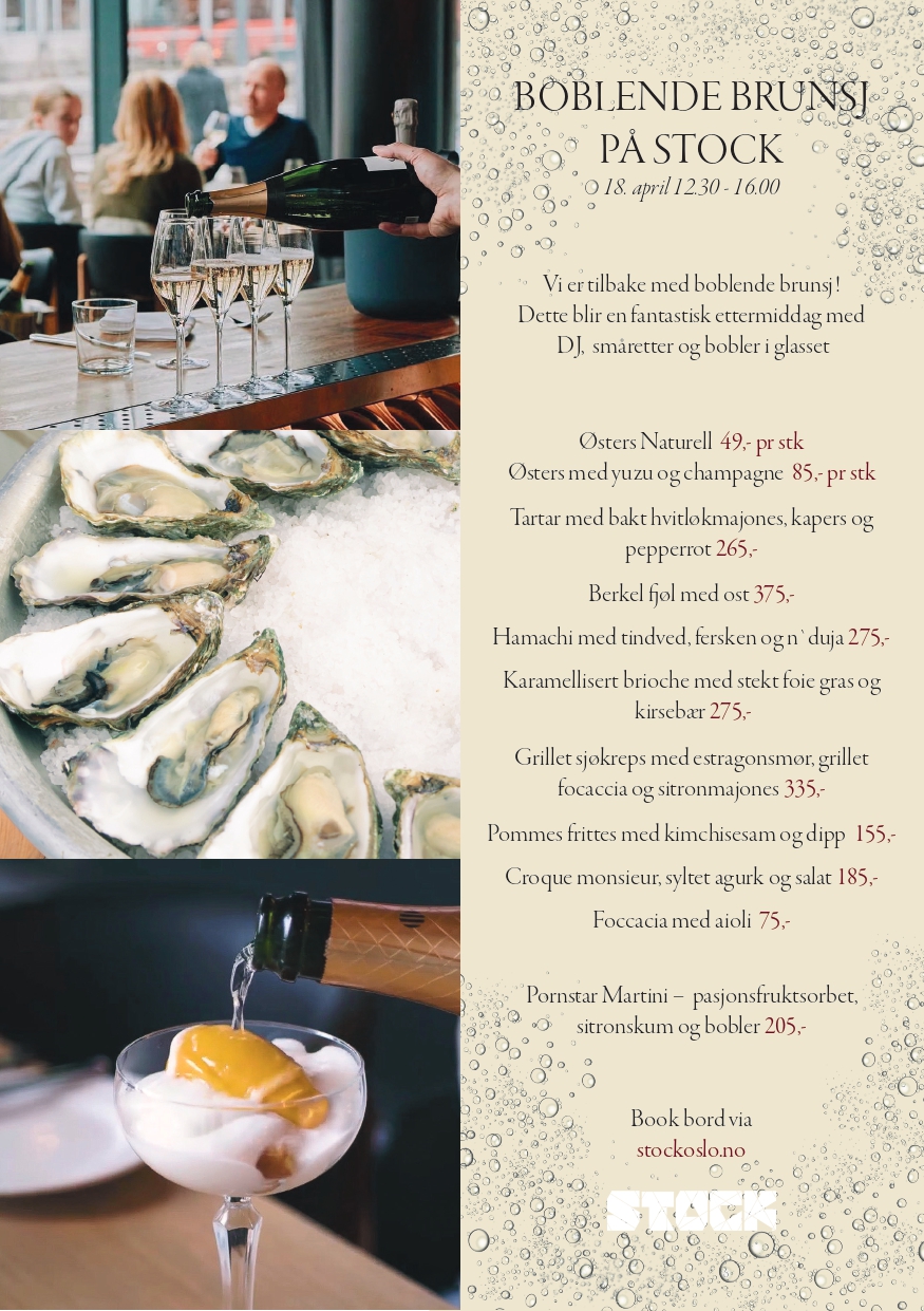 Boblende brunsj på Stock